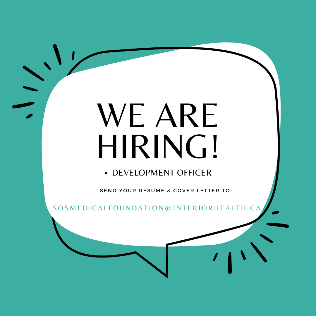 We thank all applicants for their interest in this opportunity. Please note that only those selected for an interview will be contacted. The deadline for applications is February 21st, 2024 but will remain opened until filled. To apply, please send your resume and cover letter to SOSMedicalFoundation@interiorhealth.ca . The targeted salary range for this position is $65,000 to $75,000 annually, complemented by a competitive total rewards package.
