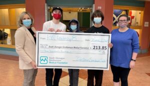 The students in the picture are Caleb McIntosh, Bradley Cameron, and David Bordas. Also in the photo is their teacher Lauren Vallis, Grade 8 Teacher at KVR Middle School. Two other students who helped with the ice cream sales and unfortunately were unable to make the photo are Kyden Wish and Brandon Gin. Also in the picture on the left is Sally Ginter, CEO of SOS Medical Foundation.